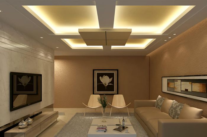 - اتاق نشیمن: استفاده از کناف برای سقف خانه با طراحی های خاص و نورپردازی های زیبا می تواند جلوه ای شیک و مدرن به فضای اتاق نشیمن ببخشد.