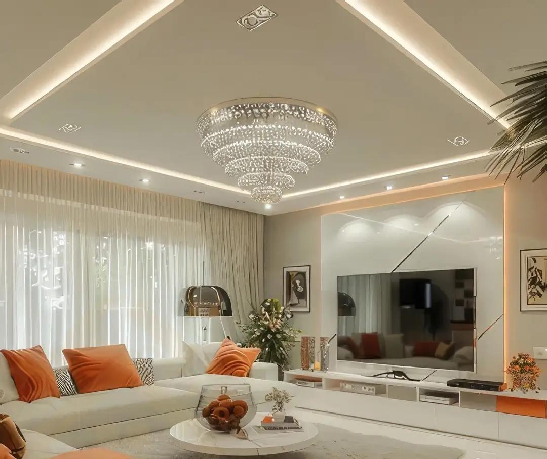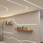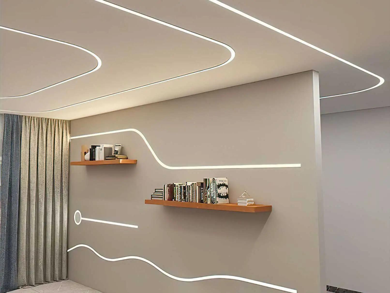 لبههای کناف با نور خطی میتوانند به ایجاد عمق و جذابیت بیشتر کمک کنند. در این طرح، لبههای کناف برجستهتر از سطح اصلی سقف طراحی میشوند و نور خطی در لبهها قرار میگیرد. این طراحی نه تنها به زیبایی فضا کمک میکند، بلکه حس فضایی بزرگتر و بازتر را نیز به وجود میآورد.