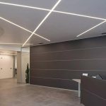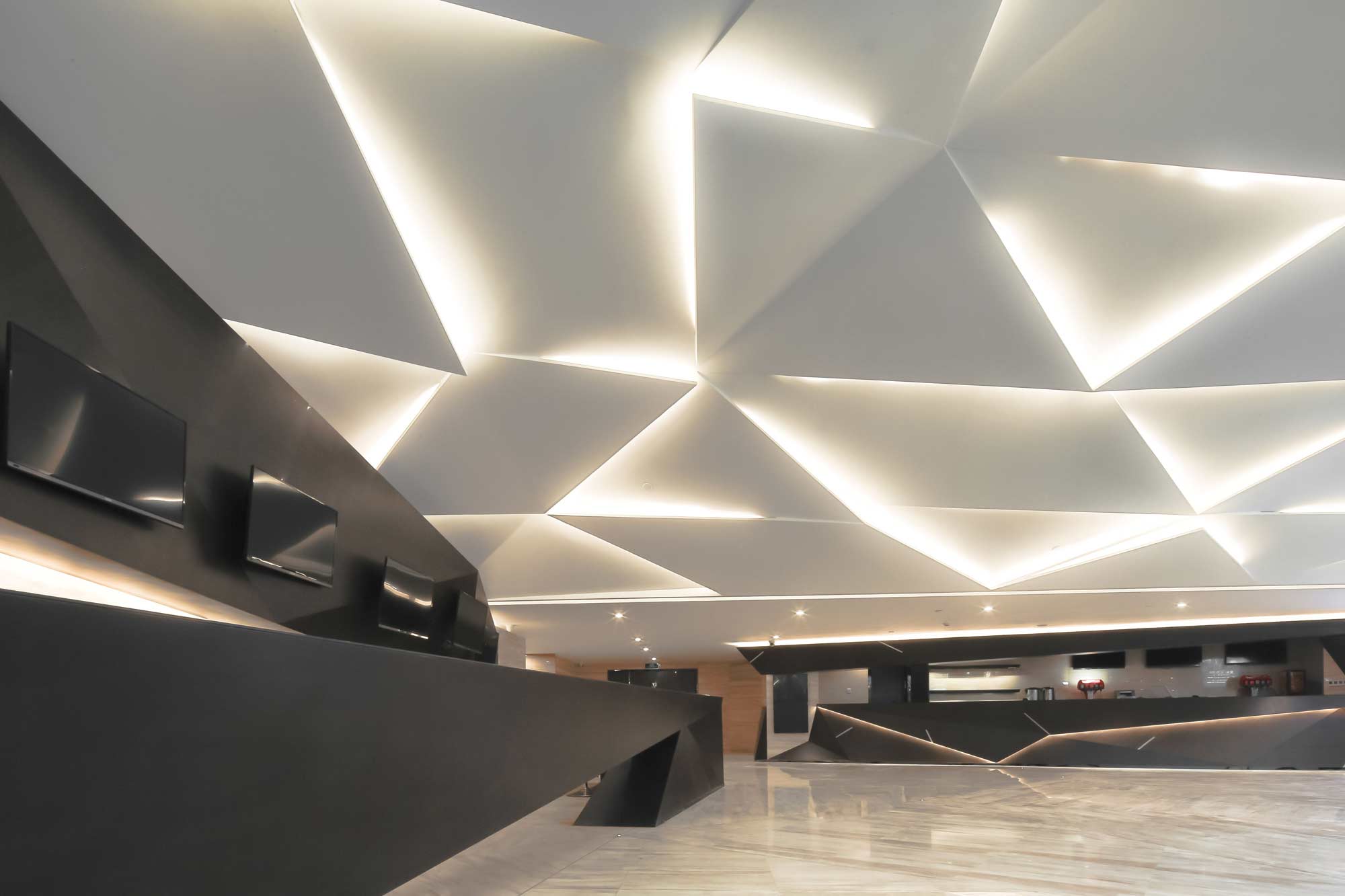 طراحی شبکهای برای سقف با نوارهای نور خطی که درون آنها قرار میگیرد، نمایی مدرن و منحصر به فرد ایجاد میکند. این طرح به دلیل ساختار خاصش، میتواند به عنوان یک عنصر اصلی در دکوراسیون داخلی شما عمل کند. نور خطی در این طراحی به صورت متقارن و منظم قرار میگیرد و فضایی هماهنگ و جذاب را ایجاد میکند.