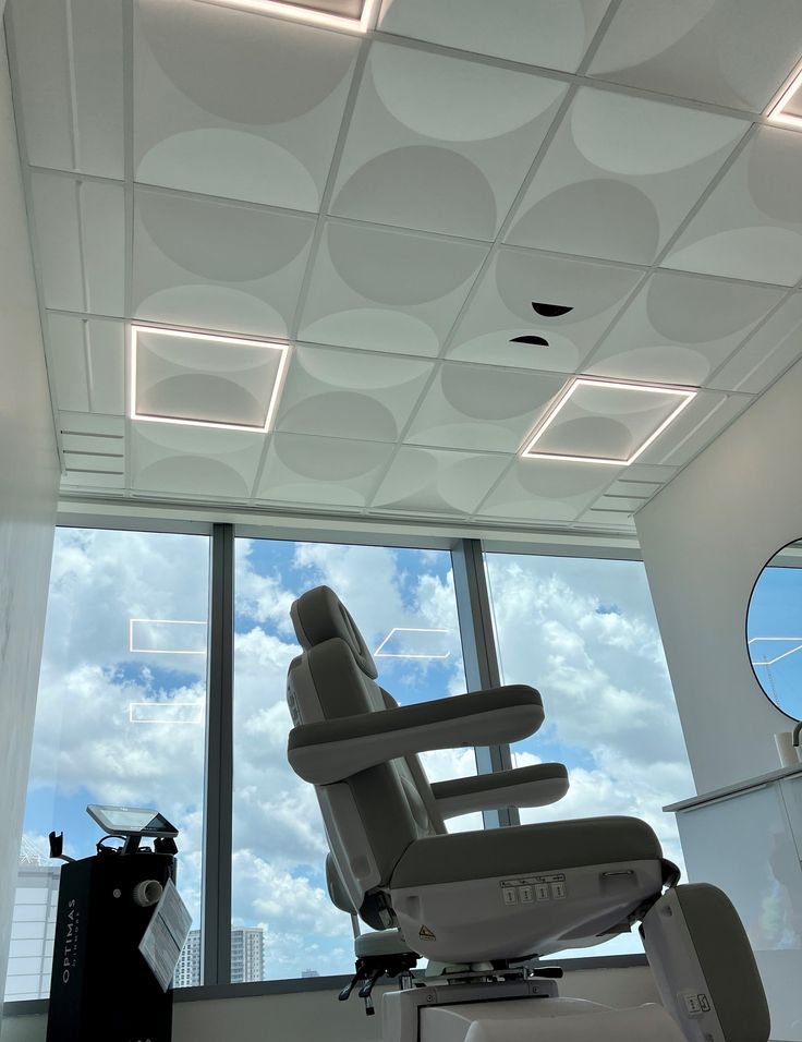 این تایلها به دلیل داشتن نقش و نگار، جلوهای خاص به فضا میبخشند و در کنار زیبایی، کاربرد آکوستیکی نیز دارند. بسیاری از طراحان از این مدلها برای سقف تایل سالنهای کنفرانس، مراکز درمانی و لابیها استفاده میکنند.