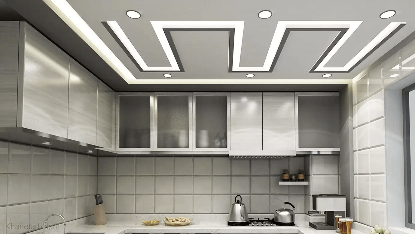 1.سقف کناف آشپزخانه و پذیرایی با نور مخفی