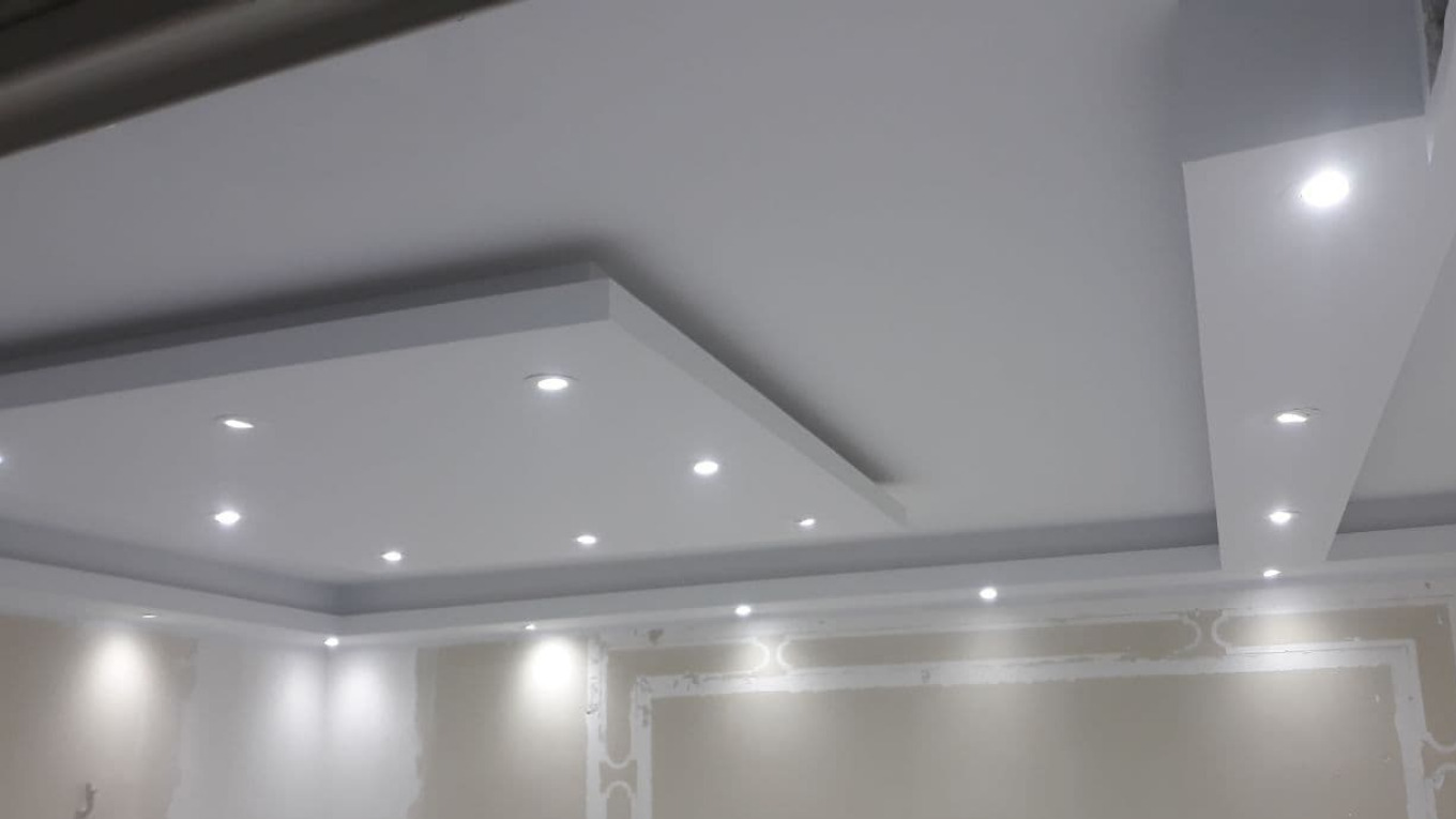 سقف کاذب دو لایه به طراحان این امکان را میدهد که عمق و جذابیت بیشتری به فضا اضافه کنند. در این نوع طراحی، لایه زیرین کمی پایینتر از لایه بالایی قرار میگیرد و این موضوع باعث ایجاد بُعد و زیبایی خاصی میشود. نورپردازی مناسب در بین لایهها نیز میتواند جلوهای ویژه به فضا ببخشد. این نوع سقف برای فضاهای بزرگ و مدرن بسیار کارآمد است.