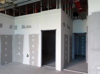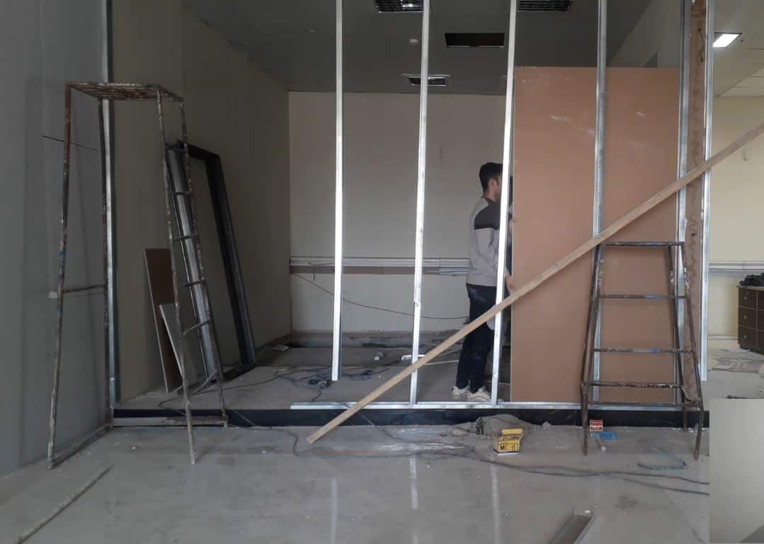 - در پایان، دو طرف پارتیشن با گچبرگ پوشانده شده و رنگآمیزی میشود.