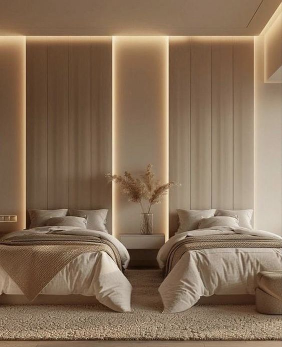 معمولا طراحی دیوار اتاق خواب با کناف به صورت دکوری یا به شکل کاملا ساده دارای نور مخفی است که از بالای تختخواب شروع شده و به کناف سقف ادامه پیدا می کند. کنافها باعث به وجود آمدن فضایی دلنشین می شوند؛ همچنین با ایجاد نورپردازی در دیوارا تاق خواب با کناف نیز فضای اتاق خواب جذابیت بیشتری می یابد.