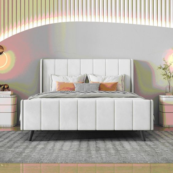 - تنوع بالا در طرح و رنگ کناف دیوار اتاق خواب