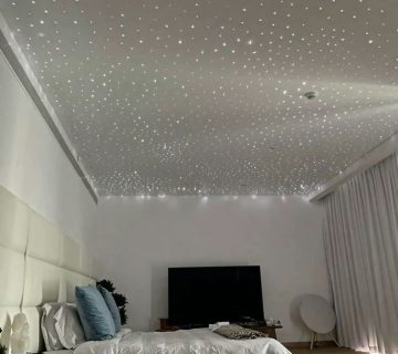 اگر به دنبال چیزی خاص میگردید، سقف آسمان مجازی انتخاب خوبی است. ترکیبی از تایلهای شفاف و تصویر چاپی که با نور مخفی، فضایی آرامبخش ایجاد میکند.