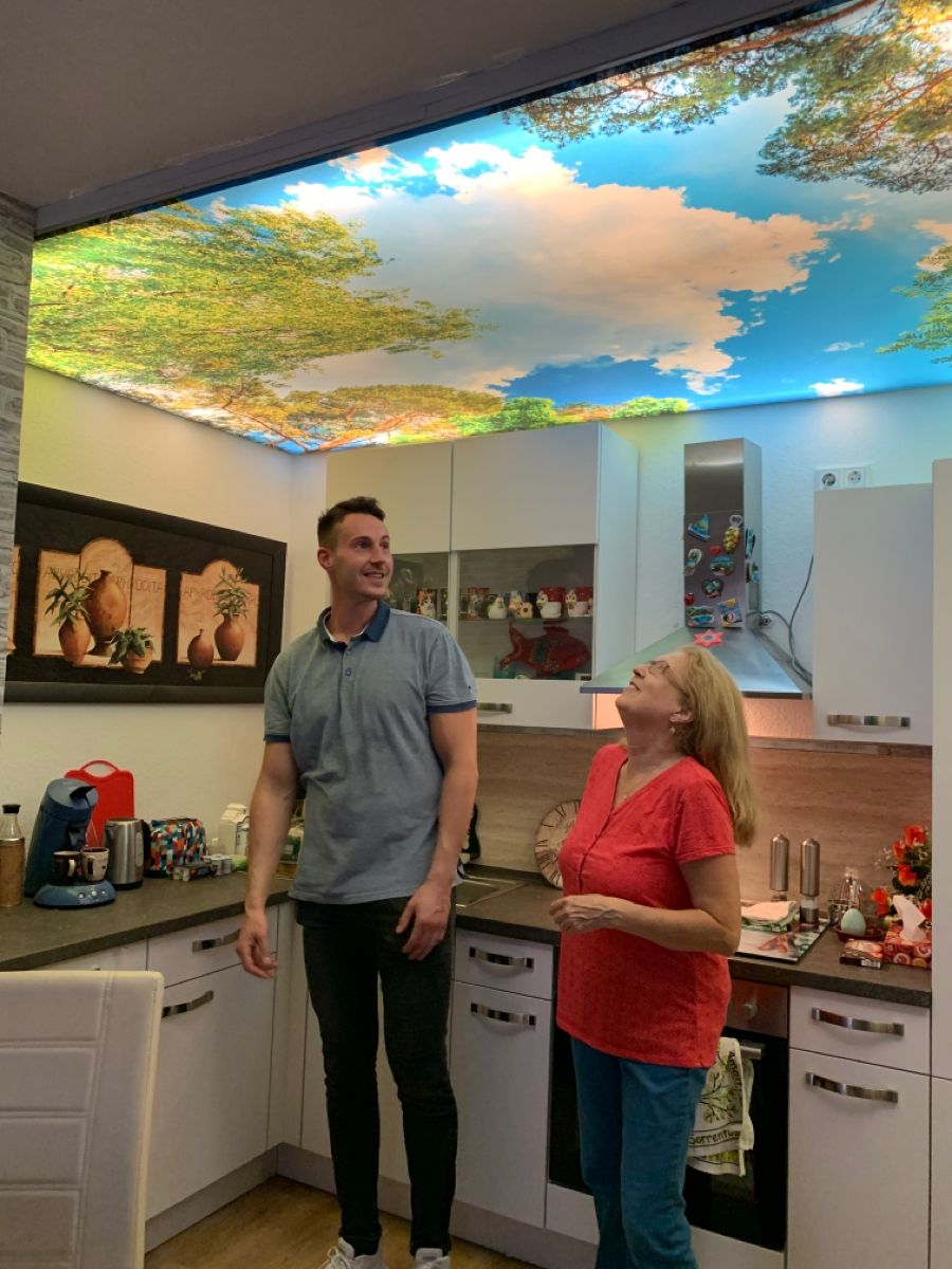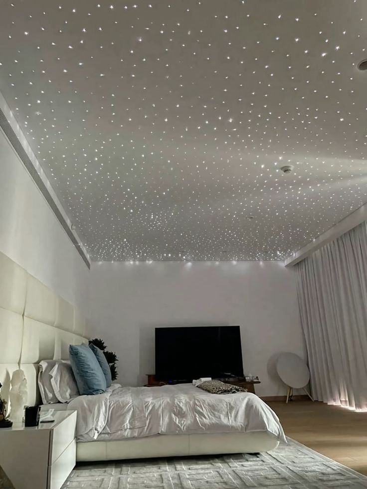 اگر به دنبال چیزی خاص میگردید، سقف آسمان مجازی انتخاب خوبی است. ترکیبی از تایلهای شفاف و تصویر چاپی که با نور مخفی، فضایی آرامبخش ایجاد میکند.
